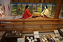 ![]() Court ladies in Tale of Genji museum showing a scene from the book |