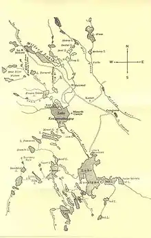 Lake Rossignol and the surrounding lakes have changed considerably since this book was written. The outlet to the lake was dammed in 1929, so that Rossignol has expanded to encompass several smaller, formerly separate lakes.