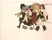 ![]() From right to left: D'Artagnan, Aramis, Porthos, and Athos. | |