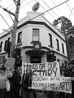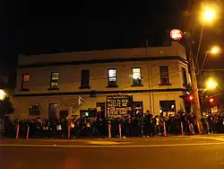 ![]() Entrance to the Tote Hotel during the January 2010 closure rally | |