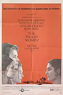 The Trojan Women (Greek: Τρωάδες) is a 1971 American-British-Greek drama film directed by Michael Cacoyannis and starring Katharine Hepburn and Vanessa Redgrave. The film was made with the minimum of changes to Edith Hamilton's translation of Euripides' original play, save for the omission of deities, as Cacoyannis said they were "hard to film and make realistic".