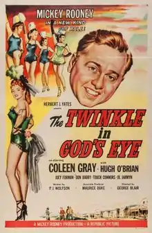 The Twinkle in God's Eye is a 1955 American Western film directed by George Blair and written by P.J. Wolfson. The film stars Mickey Rooney, Coleen Gray, Hugh O'Brian, Joey Forman, Don "Red" Barry and Mike Connors. The film was released on October 13, 1955, by Republic Pictures.[1][2][3]