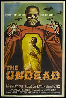 The Undead is a 1957 horror film directed by Roger Corman and starring Pamela Duncan, Allison Hayes, Richard Garland and Val Dufour. The authors' original working title was The Trance of Diana Love. The film follows the story of a prostitute, Diana Love (Duncan), who is put into a hypnotic trance by psychic Quintis (Dufour), thus causing her to regress to a previous life. Hayes later starred in Attack of the 50 Foot Woman (1958). The film was released by American International Pictures as a double feature with Voodoo Woman.