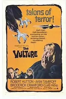 The Vulture is a 1967 horror film directed by Lawrence Huntington and starring Robert Hutton, Akim Tamiroff, Broderick Crawford, and Diane Clare.[2]