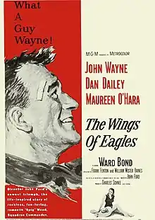 The Wings of Eagles is a 1957 American Metrocolor film starring John Wayne, Dan Dailey and Maureen O'Hara, based on the life of Frank "Spig" Wead and the history of U.S. Naval aviation from its inception through World War II.[3] The film is a tribute to Wead (who died ten years earlier, in 1947, at the age of 52) from his friend, director John Ford, and was based on Wead's "We Plaster the Japs", published in a 1944 issue of The American Magazine.[4]