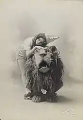 The animals in the play, including the Cowardly Lion, did not speak, following the pantomime tradition. Although the lion costume was realistic, far more so than Bert Lahr's in the MGM film, his main purpose was a bit of comic relief and scaring off the villains on occasion. His quest for courage is completely omitted, much as the other characters' quests are deemphasized in favor of various comic routines. Ultimately, though, their desire to seek the Wizard's aid gets them caught on the wrong side of the revolution, jailed and ultimately scheduled for execution. In a deus ex machina, another tornado arrives to sweep Dorothy home from the chopping block.[15]