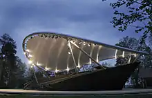 The city-state of Athens is where western theatre originated.[3][4][5][lower-alpha 3] It was part of a broader culture of theatricality and performance in classical Greece that included festivals, religious rituals, politics, law, athletics and gymnastics, music, poetry, weddings, funerals, and symposia.[6][5][7][8][lower-alpha 4]