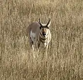 The park is home to a wide variety of Great Plains wildlife, including bison, coyotes, cougars, mustang horses, badgers, elk, bighorn sheep, white-tailed deer, mule deer, pronghorn, prairie dogs, and at least 186 species of birds including golden eagles, sharp-tailed grouse, and wild turkeys.
