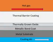 TBC and associated layers. Cooling air is often flowed through the metal substrate to enhance cooling.