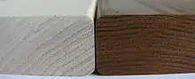 The main advantage is that softwood can be used for applications that require high durability, which might be seen as environmentally friendly. Durability class 1–3, according to European Standard EN 350-2, can be obtained out of non durable (class 5) softwood species.[7]