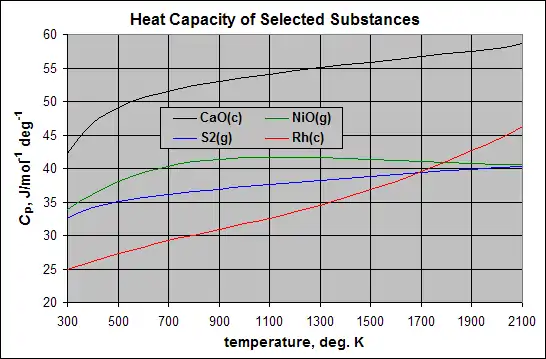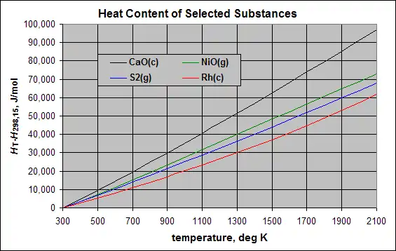 All thermodynamic data is a non-linear function of temperature (and pressure), but there is no universal equation format for expressing the various functions. Here we describe a commonly used polynomial equation to express the temperature dependence of the heat content. A common six-term equation for the isobaric heat content is: