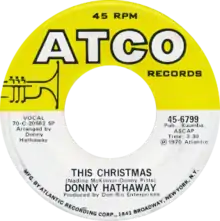 "This Christmas" is a song by American soul musician Donny Hathaway released in 1970 by Atco Records. The song gained renewed popularity when it was included in 1991 on Atco Records' revised edition of their 1968 Soul Christmas compilation album[2] and has since become a modern Christmas standard, with the American Society of Composers, Authors and Publishers reporting that it was the 30th most-performed holiday song of all time.[3]