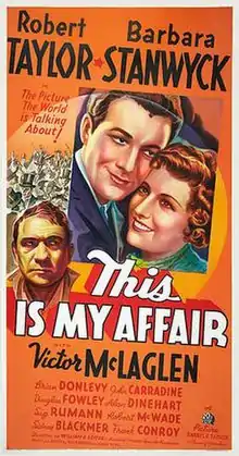 This Is My Affair is a 1937 American crime film directed by William A. Seiter and starring Robert Taylor, Barbara Stanwyck, Victor McLaglen and Brian Donlevy. It was released by 20th Century Fox.