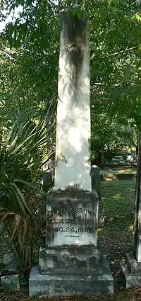Thomas Brown (October 24, 1785 – August 24, 1867) was an American politician who served as Florida's second Governor from 1849 to 1853. He is buried at the Old City Cemetery in Tallahassee.