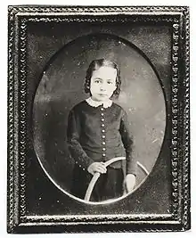 Eakins was born and lived most of his life in Philadelphia. He was the first child of Caroline Cowperthwait Eakins, a woman of English and Dutch descent, and Benjamin Eakins, a writing master and calligraphy teacher of Scots-Irish ancestry.[5] Benjamin Eakins grew up on a farm in Valley Forge, Pennsylvania, the son of a weaver. He was successful in his chosen profession, and moved to Philadelphia in the early 1840s to raise his family. Thomas Eakins observed his father at work and by twelve demonstrated skill in precise line drawing, perspective, and the use of a grid to lay out a careful design, skills he later applied to his art.[6]