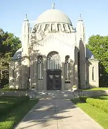 He was a great traveler and on one of his trips he was inspired by the Taj Mahal. In 1935 and 1936 he had a memorial temple constructed on a hill between Leaskdale and Uxbridge, Ontario, for his family at a cost of $200,000. The temple was designed by Foster with architects H.H. Madill and James H. Craig[2] and inspired by Mughal architecture and Byzantine architecture.