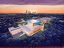 Voters approved an 0.6 percent sales tax (known as Vision 2025) on April 5, 2016,[7] which proposed to allocate $65 million for a major expansion/improvement program of Gilcrease Museum.[8] However, the project morphed into an $83.6 million plan to build an entirely new museum after it was determined that modifying the existing museum to modern standards would be too expensive.[9] Demolition of the old building and the start of the new is expected to begin in 2022, with completion projected by early 2025.[9] The Helmerich Center, as well as the Thomas Gilcrease house and the mausoleum on the property, will remain.[9]