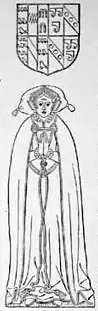 - Jane Grenville, married Sir John Arundell (1470–1512) of Trerice in Cornwall, Sheriff of Cornwall and Vice Admiral of the West to King Henry VII and to his son King Henry VIII.[16] An escutcheon showing the arms of Arundell impaling Grenville survives on the monumental brass in Stratton Church, Cornwall, of her son Sir John Arundell (1495–1561), of Trerice,[17] known as Jack of Tilbury, an Esquire of the Body to King Henry VIII and Vice-Admiral of the West.