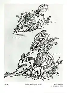 Thomas Kirk did not produce any of the illustrations for The Forest Flora of New Zealand, though they were carried out under his supervision. Drawings were done by draughtsmen of the Survey Department, while a Mr D. Blair and Mr A. Hamilton contributed at least twenty-six of the plates. Two staff members of the Survey Department, Hugh McKean and Hugh Boscawen, each contributed thirty-eight signed plates. Other artists were E. J. Graham (twenty-nine plates) and W. de R. Barclay (one plate). A close scrutiny of the twenty unsigned plates suggests they were the work of Boscawen or Hamilton.[9]