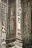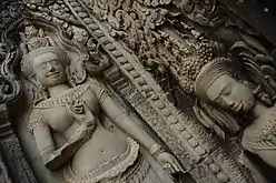 Images of devatas, the female divine carved figurines, are seen in profusion here, as in other Khmer temples. They are the centre of attraction in Thommanon. The devatas depict flower crowns, sampots (Cambodian skirts), necklaces, armbands, belts and ankle bands.[5]