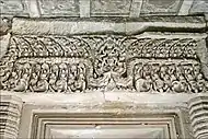 Thommanon is better preserved than Chau Say Tevoda, though they are similar in design. The reason for better preservation of Thommanon is attributed to the fact that its superstructure does not have stone-enclosed wood beams. Thus, adoption of sandstone as the medium for carvings in this temple has made it more advanced in its architectural design vis-à-vis other temples in its vicinity, which were mostly wood-based. All doorways include carved pediments.[5][7][8]