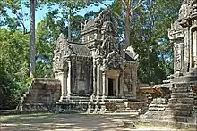 Thommanon (Khmer: ប្រាសាទធម្មនន្ទ) is one of a pair of Hindu temples built during the reign of Suryavarman II (1113–1150) at Angkor, Cambodia.[1]: 119 The name of the temple is derived from the Pali words "Dhamma", which means 'Buddhist Teachings' and "Nanda", which means 'supreme wisdom'.[2] This small and elegant temple is east of the Gate of Victory of Angkor Thom and north of Chau Say Tevoda. It is part of the UNESCO World Heritage Site, inscribed by UNESCO in 1992 titled Angkor. The temple is dedicated to Shiva and Vishnu.[3]