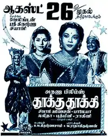 Thookku Thookki (transl. Baggage carrier) is a 1954 Indian Tamil-language historical drama film directed by R. M. Krishnaswami. Based on the play of the same name by Udumalai Narayana Kavi, it stars Sivaji Ganesan, Lalitha and Padmini. The film revolves around a prince who, after hearing about the five maxims of life, goes through numerous adventures to evaluate their validity.