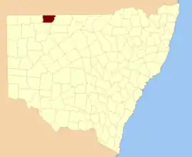 | Newland | Unincorporated | 29°09′44″S 144°11′12″E |