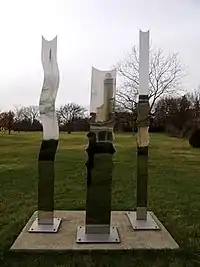 Three Graces is a public art work by artist Heinz Mack located at the Lynden Sculpture Garden near Milwaukee, Wisconsin, United States. The three pillars are named Thalia, Aglaia and Euphrosyne; they are attached to a base and installed on the lawn.[1]