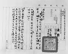 Tibet came under the rule of the Qing dynasty of China in 1720 after the Qing expelled the forces of the Dzungar Khanate. But by the end of the 19th century, the Chinese authority in Tibet was no more than symbolic.[17] Following the Xinhai Revolution in 1911–1912, Tibetan militia launched a surprise attack on the Qing garrison stationed in Tibet after the Xinhai Lhasa turmoil. After the fall of the Qing dynasty in 1912, the Qing officials in Lhasa were then forced to sign the "Three Point Agreement" for the surrender and expulsion of Qing forces in central Tibet. In early 1912, the Government of the Republic of China replaced the Qing dynasty as the government of China and the new republic asserted its sovereignty over all the territories of the previous dynasty, which included 22 Chinese provinces, Tibet and Outer Mongolia.[18] This claim was provided for in the Imperial Edict of the Abdication of the Qing Emperor signed by the Empress Dowager Longyu on behalf of the six-year-old Xuantong Emperor: "... the continued territorial integrity of the lands of the five races, Manchu, Han, Mongol, Hui, and Tibetan into one great Republic of China" (... 仍合滿、漢、蒙、回、藏五族完全領土,為一大中華民國).[19][20][21] The Provisional Constitution of the Republic of China adopted in 1912 specifically established frontier regions of the new republic, including Tibet, as integral parts of the state.[22]