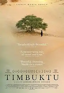 Timbuktu is a 2014 Mauritanian-French drama film directed and co-written by Abderrahmane Sissako. The film centres on the brief occupation of Timbuktu, Mali by Ansar Dine, and is partially influenced by the 2012 public stoning of an unmarried couple in Aguelhok. Shot in Oualata, Mauritania, Timbuktu was selected to compete for the Palme d'Or in the main competition section at the 2014 Cannes Film Festival, where it won the Prize of the Ecumenical Jury and the François Chalais Prize.[4][5][6] It was chosen as Mauritania's submission for the Academy Award for Best Foreign Language Film, and went on to be nominated for the prize at the 87th Academy Awards; it was also nominated for the BAFTA Award for Best Film Not in the English Language at the 69th British Academy Film Awards.[7][8] Timbuktu was named Best Film at the 11th Africa Movie Academy Awards, where it was nominated for ten further awards.[9] In 2017, The New York Times ranked it the twelfth best film of the twenty-first century so far.[10]