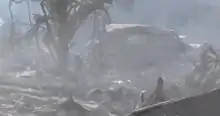 More than 80 rockets were fired towards Southern Israel.[110] An Israeli Bedouin civilian was killed in Palestinian rocket fire that struck the Bedouin village of Rejwan in the Negev.[111] Palestinian militants fired 18 rockets at Beersheba. At least 9 were intercepted by the Iron Dome, while three landed in the city. One landed near a bus, which suffered shrapnel damage, another damaged a vehicle, and the third landed in a soccer field. Rockets were also fired at Ashkelon; one was intercepted and another landed in an open area. The city's Barzilai Medical Center relocated its emergency room to its fortified basement after rocket shrapnel struck near the hospital's maternity ward. There was also rocket fire at Ofakim.[112][113] For the second time, sirens sounded in Jerusalem, and two rockets were fired at the city, but landed in an open area of the West Bank between two Palestinian villages.[110][114][115] Dozens of rockets struck Kiryat Malakhi, Sderot and Ashdod.[114] Thirteen rockets were fired at the Eshkol Regional Council, killing an Israeli soldier deployed in the vicinity of Gaza and an Israeli civilian.[116][117] Later during the day, a rocket struck Eshkol wounding five people.[118] Two rockets were fired at Jerusalem.[110] A rocket struck a six-story building in Rishon LeZion injuring four people.[119][120]