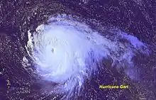 The 1999 Atlantic hurricane season was an event in the annual tropical cyclone season in the north Atlantic Ocean. This Atlantic hurricane season saw a near-average number of named tropical storms,[1][nb 1] though five of them became dangerous hurricanes of Category 4 intensity on the 5-level Saffir–Simpson scale, the most in a single season since 1886.[3] The season officially began on June 1, 1999 and ended on November 30, 1999. These dates, adopted by convention, historically describe the period in each year when most tropical systems form.[4] This season's first storm, Tropical Storm Arlene, formed on June 11, while the last, Hurricane Lenny, dissipated on November 23.