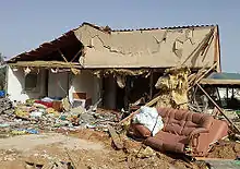 Overnight in the Northern Gaza Strip, 57 airstrikes, together with tank and gunboat fire, struck and shelled a variety of sites, destroying 10 houses and institutional offices, including a disability rehabilitation center. 77 people were wounded including 28 children and 21 women. In Gaza City, 43 airstrikes, combined with ground and sea shelling destroyed 11 houses, and hit security sites, and open land, with 11 killed and 30 wounded. In the Central Gaza Strip, 35 airstrikes demolished 9 houses, militant sites, open areas, and some charities and mosques. There were 6 fatalities and 41 wounded. In Khan Yunis, 39 airstrikes hit housing, demolishing 12 houses, open areas, a charity, and a bank. There were 9 fatalities. In Rafah 34 airstrikes targeted houses, destroying 8, and government offices and tunnels, and ground and sea artillery was all offices. There were 28 fatalities.[152] An IDF strike targeting Gaza police chief Tayseer Al-Batsah's home killed 21 people and wounded 45.[153] The police chief's Gaza City house was nearly destroyed by two rockets.[154][155] Many of those killed were leaving a mosque, next door to the home, at the time of the strike.[156]