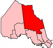 ![]() Timmins—James Bay in relation to other electoral districts in Northern Ontario | |