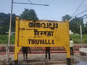 ![]() Tiruvalla station name board | ||||||||||||||||||||||||||||||||||||||||||||||||||||||||||||||||||||||||||||||||||||||||||||||||||||||||||||||||||||||||||||||||||||||||||||||||||||||||||||||||||||||||||||||||||||||||||||||||||||||||||||||||||||||||||||||||||||||||||||||||||||||||||||||||||||||||||||||||||||||||||||||||||||||||||||||||||||||||||||||||||||||||||||||||||||||||||||||||||||||||||||||||||||||||||||||||||||||||||||||||||||||||||||||||||||||||||||||||||||||||||||||||||||||||||||||||||||||||||||||||||||||||||||||||||||||||||||||||||||||||||||||||||||||||||||||||||||||||||||||||||||||||||||||||||||||||||||||||||||||||||||||||||||||||||||||||||||||||||||||||||||||||||||||||||||||||||||||||||||||||||||||||||||||||||||||||||||||||||||||||||||||||||||||||||||