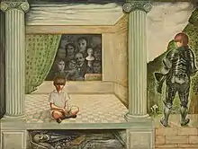 In his early works, according to Edward Sullivan, "the figures are solidly constructed in an almost sculptural fashion. They exist in a seemingly timeless realm"; in works of the 1970s he seems to be paying homage to Mantegna, Piero and other Quattrocento artists who "demonstrated such interest in the cool, calm and quasi-mathematical measuring of space. Many of these compositions are highly expansive and suggest the ambitious spatial descriptions of mural paintings."[9]