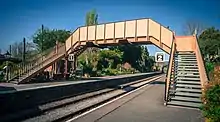 The station was inspected by Major Rose of Her Majesty's Railway Inspectorate on 21 March 1984 and authorisation was given for operation of a 2-coach push and pull train over a ¼-mile section of track as far as Didbrook Bridge.[30] The official reopening of the station took place on 22 April 1984 when Nicholas Ridley, the local MP, cut the tape on Easter Sunday.[31][32] By 2003, the line had been extended south to Cheltenham Racecourse.[33] In late-2005/early-2006, a start was made to relay track north towards Broadway,[34] and the first 2 miles (3.2 km) of this section, as far as Laverton Halt, re-opened in March 2011.[35]