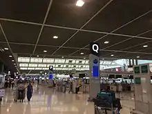 For domestic flights, three gates (65, 66, and 67) in the main building are connected to both the main departures concourse and to a separate domestic check-in facility. Passengers connecting between domestic and international flights must exit the gate area, walk to the other check-in area, and then check in for their connecting flight.
