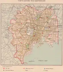 Tokyo City (東京市, Tōkyō-shi) was a municipality in Japan and part of Tokyo-fu which existed from 1 May 1889 until its merger with its prefecture on 1 July 1943.[1] The historical boundaries of Tokyo City are now occupied by the Special Wards of Tokyo. The new merged government became what is now Tokyo, also known as the Tokyo Metropolis, or, ambiguously, Tokyo Prefecture.