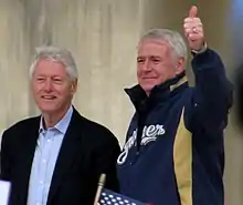 As a U.S. Representative, Barrett worked with his colleagues to secure aid for flood remediation projects in his district. He also worked to modernize the Community Reinvestment Act and frequently voiced his support of Milwaukee's Midwest Express Airlines.[14] Barrett sponsored 37 bills and co-sponsored 1345 bills between January 5, 1993 and October 10, 2002.[15] He was a delegate to the 2000 Democratic National Convention from Wisconsin.[16]