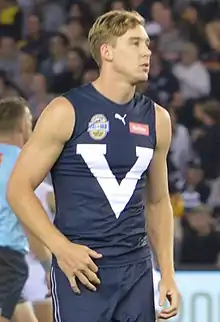 He was unable to earn selection to local TAC Cup representative team, the Dandenong Stingrays as a 16-year-old in 2009, but in 2010 played a handful of games in the early part of the year before earning selection for the Victorian Country team at the 2010 AFL Under 18 Championships.[3][7] He played in all five of his side's matches that year, playing a key role in their premiership with a total of eight goals to his name and an average 13 disposals per game across the tournament.[3][8] Upon returning to the TAC Cup competition, Lynch began to thrive, featuring in Dandenong's best players in each of his last seven matches.[3]