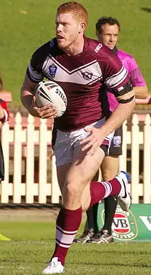 In his first year at Manly, he played for the club in their 2013 NRL Grand Final loss to his former club the Sydney Roosters.[6] The following year, Manly again qualified for the finals but were eliminated by Canterbury-Bankstown. Symonds played with Manly up until the end of the 2016 NRL season before departing the club.[7]
