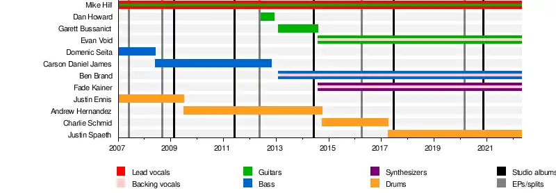 | Past members | Dan Howard, Carson Daniel James, Justin Ennis, Dominic Seita, Andrew Hernandez II, Fade Kainer, Ben Brand, Evan Void |