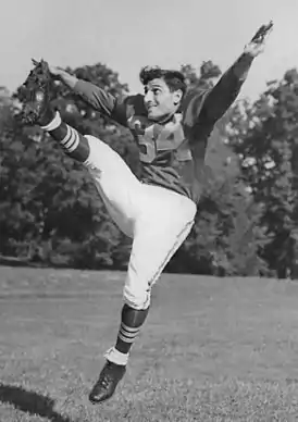 Collella was drafted by the National Football League's Detroit Lions in 1942, and played two seasons for the team.[2] The Cleveland Rams acquired him in 1944.[3] He played as a halfback and punter for the Rams, who won the NFL championship in 1945.[4] The Cleveland Browns, a new team under formation in the All-America Football Conference, signed Colella soon after the 1945 season ended.[5] He was among five players who joined the Browns when the Rams moved to Los Angeles before the 1946 season; the others were Chet Adams, Don Greenwood, Mike Scarry and Gaylon Smith.[6]