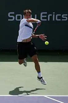 Tommy Robredo Garcés (Spanish pronunciation: [ˈtomi roˈβɾeðo ɣaɾˈθes],[lower-alpha 1][3] Catalan: [ɡəɾˈses]; born 1 May 1982) is a Spanish retired professional tennis player.[4] His career-high singles ranking was world No. 5, which he reached in August 2006 as a result of winning the Hamburg Masters earlier in the year. Robredo reached the quarterfinals at seven singles major tournaments. He was also a three-time semifinalist at the US Open men's doubles tournament, and a semifinalist at the Australian Open in mixed doubles.