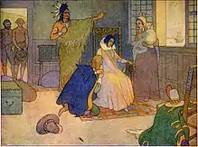 Pocahontas and Tomocomo were never given a formal audience before King James. However, on January 5, 1617 they were brought before the King at the Banqueting House in Whitehall Palace, at a performance of Ben Jonson's masque The Vision of Delight. According to Smith, both Pocahontas and Tomocomo did not realize who they had met until it was explained to them afterward. Tomocomo was disappointed that the King did not offer a present, saying to Smith "You gave Powhatan a white dog, which Powhatan fed as himself, but your King gave me nothing, and I am better than your white dog."[4]