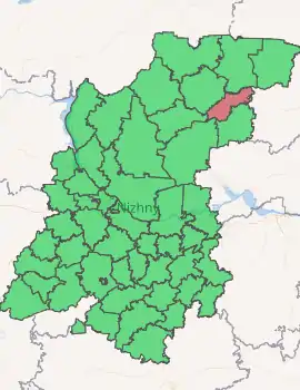 Tonkinsky District (Russian: Тонкинский райо́н) is an administrative district (raion), one of the forty in Nizhny Novgorod Oblast, Russia.[1] Municipally, it is incorporated as Tonkinsky Municipal District.[5] It is located in the northeast of the oblast. The area of the district is 1,018.5 square kilometers (393.2 sq mi).[1] Its administrative center is the urban locality (a work settlement) of Tonkino.[1] Population: 9,007 (2010 Census);[2] 11,097 (2002 Census);[7] 12,551 (1989 Census).[8] The population of Tonkino accounts for 56.7% of the district's total population.[2]