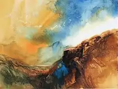 Concurrent with his own painting, Smibert is a Visiting Artist Researcher at Tate Britain.[23] His interest in the 19th century British painter J. M. W. Turner has taken him to London many times to work directly from Turner's sketchbooks and paintings. Smibert's collaboration with Dr Joyce Townsend has included using watercolour pigments from Turner's studio to recreate the methods of Turner and building an extensive collection of historic artist materials and watercolour boxes from the 18th, 19th and 20th centuries. Smibert's research includes visiting precise locations where Turner had worked around Britain and Europe and comparing them to the artist's original drawings and colour studies towards a practical understanding of Turner's creative processes.[22][24] Smibert has demonstrated Turner's techniques on BBCTV's Fake or Fortune programme[25] and delivered master classes and workshops for curators and artists at art museums including the Tate, the National Gallery of Australia, National Gallery of Victoria and Art Gallery of South Australia. In 2013 he and pianist Ambre Hammond created a public performance Turner and the Sublime to bring Turner and this research to life for audiences at the National Gallery of Australia and the Art Gallery of South Australia as part of the Turner at the Tate: The Making of a Master exhibition.[26]