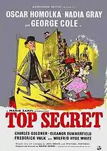 Top Secret is a 1952 British comedy film directed by Mario Zampi and starring George Cole, Oskar Homolka and Nadia Gray.[2] A sanitation inspector is mistaken for an international spy. It was shot at the Elstree Studios of Associated British. The film's sets were designed by the art director Ivan King. The film was released in the United States as Mr. Potts Goes to Moscow.[3]